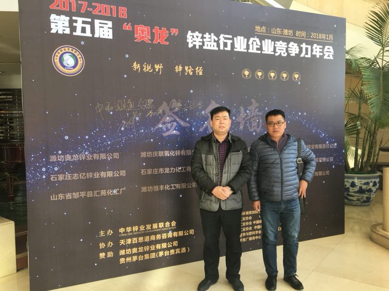 2018年1月10-11日由中華鋅業(yè)發(fā)展聯(lián)合會(huì)主辦,天津百思道商務(wù)咨詢有限公司協(xié)辦、濰坊奧龍鋅業(yè)有限公司贊助的2017-2018第五屆“奧龍”鋅鹽行業(yè)企業(yè)競(jìng)爭(zhēng)力